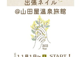 旅先でも、指先からほっとひと息。2025年11月1日より山田屋温泉旅館で出張ネイルスタートします! ネイルケアやハンドマッサージ、ジェルネイル(ワインカラー)をお部屋で施術いたします。15:00~21:00(最終受付20 […]
